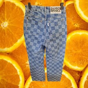 Ragged Blue Checked Straight Leg Jeans Size 24