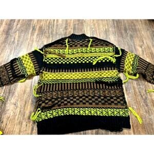 This Ragged Jeans sweater is a must-have for any fashion-forward man. With its black color and pullover style, it's perfect for any casual occasion. The sweater features hanging strings and a beetlejuice design, adding a touch of uniqueness to your outfit. Made for regular size, this sweater fits comfortably and is perfect for men who love hip hop and grunge styles. It's a great addition to any wardrobe and can be paired with jeans or joggers. Don't miss out on this trendy and stylish piece.