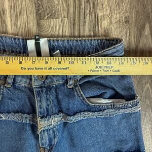Ragged Jeans Patchwork Denim Maxi Skirt Size 30 Blue Two Tone Frayed Panels