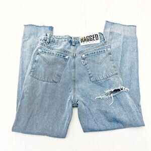 Ragged Jeans Skinny Raw Hem Cheek Ripped Light Wash Zip Fly Denim Jeans Size 24