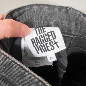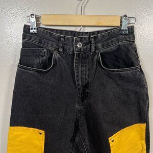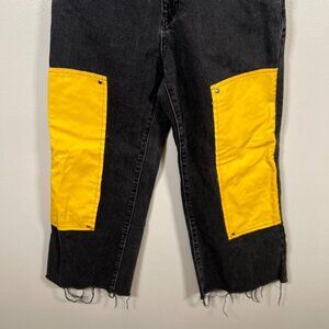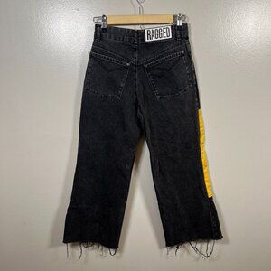 Ragged Priest Crop Patchwork Jeans Size 28 Black Yellow Grunge Punk Frayed Hem