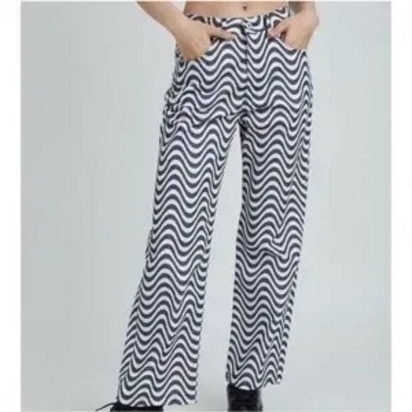 Ragged Priest Jeans Women's Wide Leg Black White Wave Print Dad Jeans Size 26