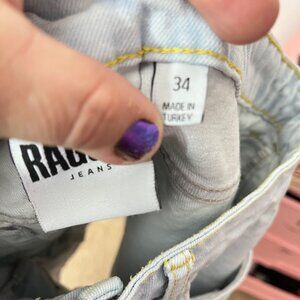 denim shorts, light wash, Ragged Jeans, casual wear, summer shorts, cotton material, size 34, blue denim, five-pocket shorts, button fly, zip closure, made in Turkey, Punk, goth, festival, rock