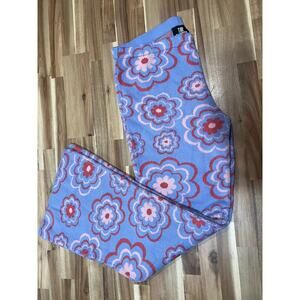 The Ragged Priest Whimsical Flower Power Purple Flare Pants in size Large are a unique and stylish addition to any woman's wardrobe. These multicolored pants have a floral pattern and a flared leg style, perfect for adding a playful and grunge punk touch to any outfit. Made of acrylic material, these pants feature an elastic waist, belt loops, and stretch for added comfort and flexibility. Ideal for travel, parties, or casual wear, these dress pants from The Ragged Priest are sure to make a statement with their whimsical flower power design.