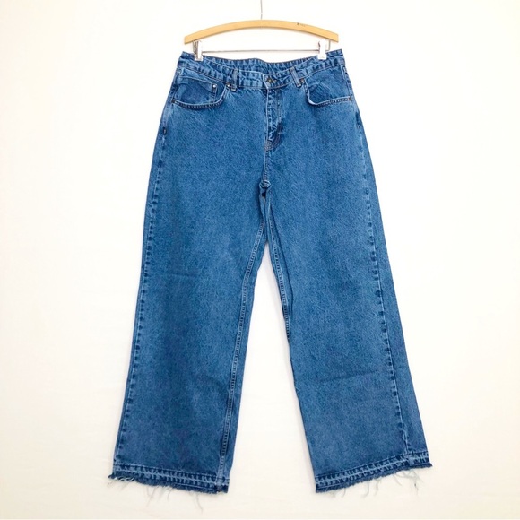 Ragged Priest wide leg, raw hem high waist, denim jeans