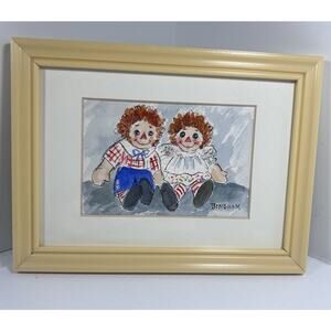 Raggedy Ann & Andy Original Watercolor signed Bingham Framed