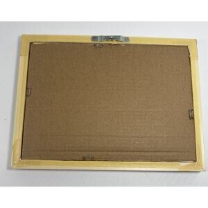 The frame appears to be from the 70's but I don't know the time period of the art. I took the original backing off to clean the inside of the glass and verify that this was in fact an original watercolor and not a print. The art is on canvas board, original. I replaced the backing board to make it cleaner. The art itself measures approximately 4.5 X 3 inches, has a mat and the framed piece measures approximately 5 3/4 X 7 1/2. There is a tooth hanger for hanging but it is also cute on a stand which is pictured but not included.