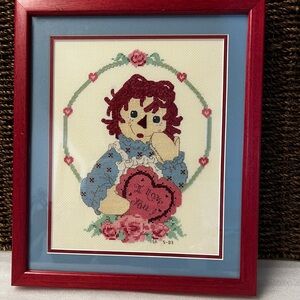 Raggedy Ann "I Love You" Janlynn Counted Cross Stitch Framed and Matted Picture