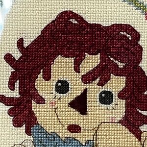 Capture a piece of timeless charm with this beautifully framed Janlynn counted cross stitch featuring the beloved Raggedy Ann holding a heart embroidered with "I Love You." This handcrafted piece, based on the classic Janlynn kit #77-101, showcases intricate stitching and vibrant colors, making it a heartwarming addition to any home or a perfect gift for a loved one. This is a unique pre-owned item sure to bring back childhood memories!