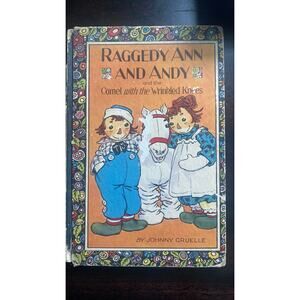 This antique book, titled "Raggedy Ann and Andy and the Camel with the Wrinkled Knees," is a rare find for collectors and fans of the popular children's characters. Written and illustrated by Johnny Gruelle in 1924, this hardcover edition was published by M.A. Donohue in Chicago and features the beloved brother and sister dolls on a new adventure.
