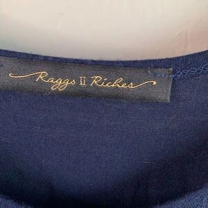 Raggs II Riches tank top navy blue spaghetti straps lace embellishment on bottom