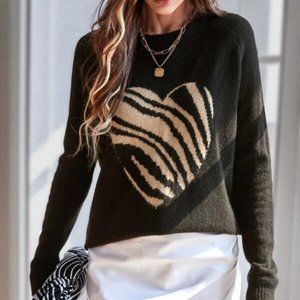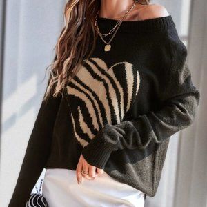 Raglan Sleeve Zebra Heart Print Knit Sweater Top
