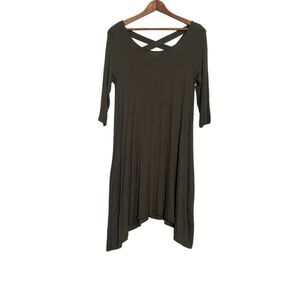 Rags & Couture Cross Back Asymmetrical Swing Tunic Dress Olive Green Size Small