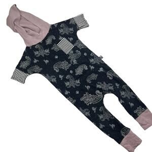 Rags Hooded Pocket Romper. Black and gray hood. Size 3/4, GUC, has wash wear and fade throughout, see photos.