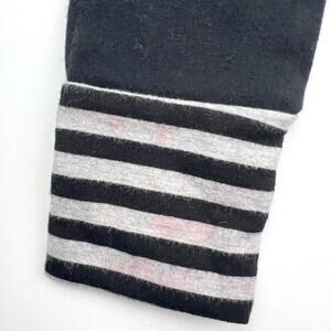 Rags Stay Golden Romper. Black with gold lettering and striped cuffs. Size 6/12m, play for some color transfer on cuff, I haven’t tried to treat.