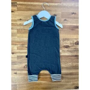 Rags to Raches Gray Green Pink Tic Tac Toe Graphics Sleeveless Cotton Romper 12M