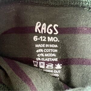 Rags to Raches Stripe Long Sleeve T-Shirt Green Blue Soft 6-12 Months GUC