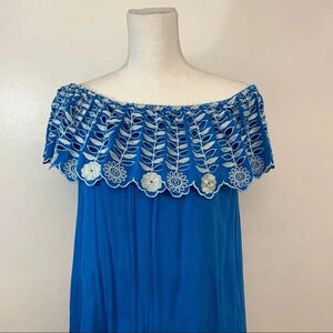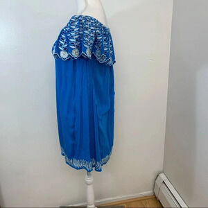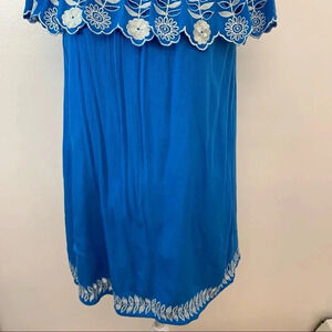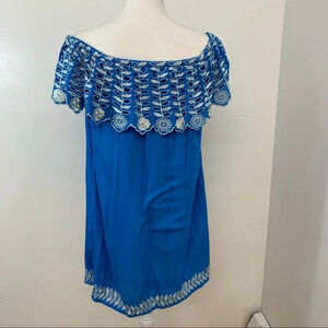 Rahi Cali Off Shoulder Mini Dress Small Blue Beach Cover Up Embroidery Scallop