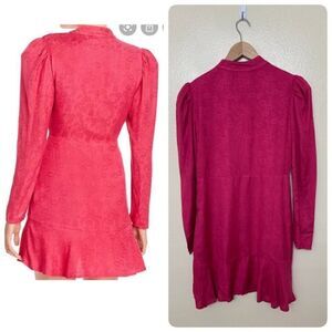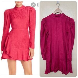 Rahi Sophie Ruffled Floral Jacquard Mini Shift Dress Small Fuschia Pink $128