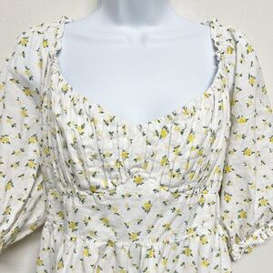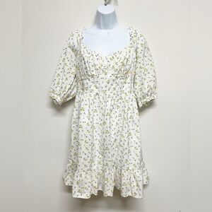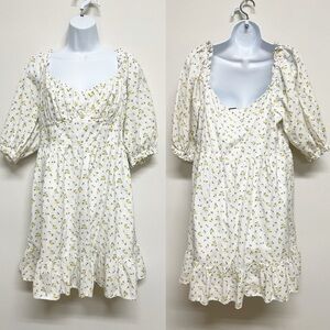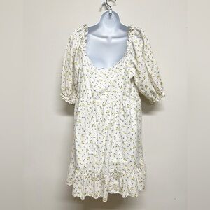 Rahi Womens White Yellow Floral Sweetheart Neckline Midi Puff Sleeve Prairie Dress Size XL
