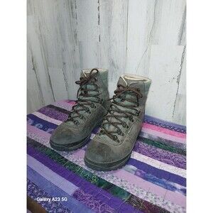 Raichle Leather Mountaineering boots Green and Gray Men's Size 6.5 M After market laces. Gently used, see photos for signs of wear. Inventory #14