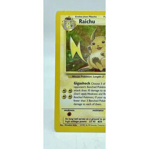 The card is made of high-quality card stock and was manufactured by Nintendo in 1999. It is a Standard size card with the card number 14/62. The card name is Raichu and it is a Pokémon type card with the attack power of Gigashock/30. The illustrator is Mitsuhiro Arita and the language is English. This card is perfect for players aged 4+ and is an Unlimited edition.
