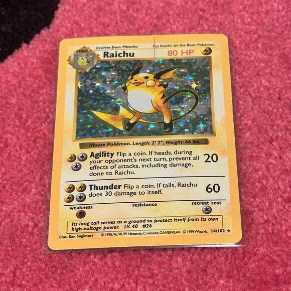 ![Raichu [Shadowless] #14 – Pokémon Base Set – As Pictured - Picture 6 of 6](https://di2ponv0v5otw.cloudfront.net/posts/2025/12/17/694366c6a5664942655d4d6f/m_694366ca5df8e7c7f13517bb.jpeg)
