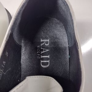 Stylish chunky platform shoes in white with black laces and soles by Raid. Perfect for a bold fashion statement or emulating the Y2K trend.