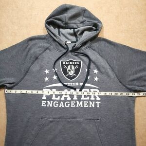 Sport-Tek brings you the Raiders Short Sleeve Fleece Pullover, a perfect blend of comfort and style for the fan who wants to show their team spirit year-round. It is pre-owned and in excellent condition! This gray hoodie is designed with a cozy cotton-polyester blend and features a soft fleece fabric type that provides warmth without the weight.