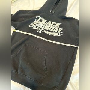 Raiders Hoodie Mens XL Black Sunday Football Skull Sword Spikes Helmet Game Day. Great used condition. Some light normal wear. A minimal amount of fade. No rips stains or defects. However the drawstring is missing. Please see pictures for measurements.