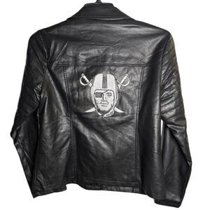 Amazing 😍. This faux leather is amazing and so soft, feels like lambskin. Metal zips and full silky lining. Embroidered logos on front and back. Was sold on the Raider Nation website, sold out now.