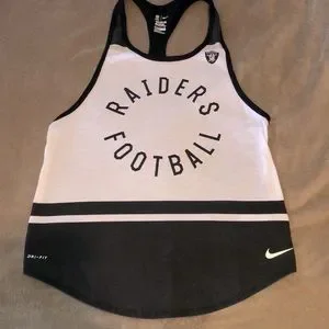 Raiders tank top. Front is cotton material back is dry fit. Front bottom does have a faded look.