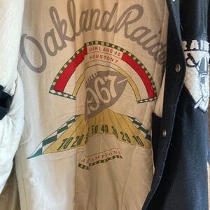 Excellent condition, leather arms and wool jacket. Inside pockets, XL