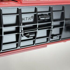 This M.T.H RailKing Rugged Rails New York Central O-27 freight boxcar transports you straight into the nostalgic age of American railroads. Featuring a vibrant red and gray colorway, this ABS plastic model is detailed with charming, authentic logos and markings of the NYC 74106. Its durable die-cast metal trucks and realistic operating metal couplers ensure a steady addition to any model railroad collection. Perfectly suited for O-27 layouts, this boxcar combines rugged construction with finely crafted aesthetics. The included original packaging and warranty registration card reinforce its collectible appeal, making it a standout addition for train enthusiasts.