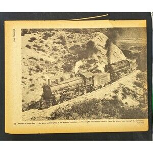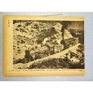 Railroad Magazine Photo Print "Thunder in Cajon Pass Pulling Santa Fe Train 1956 Railroad Magazine October 1956 About 11 x 8.5 Inches. Carefully shipped.
