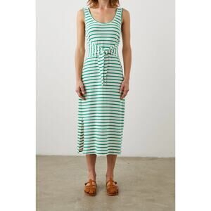 Rails $138 Meg Green White Sailor Stripe Tie Waist Midi Dress SZ S