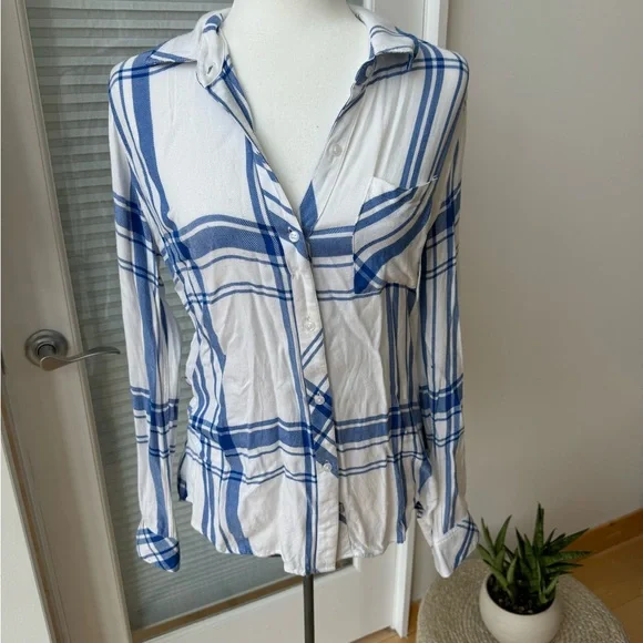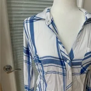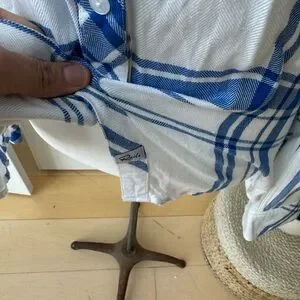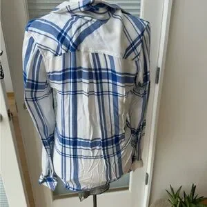 Gently worn white and blue super soft button down. A little wear and pulling on front. Tried to show in photos.