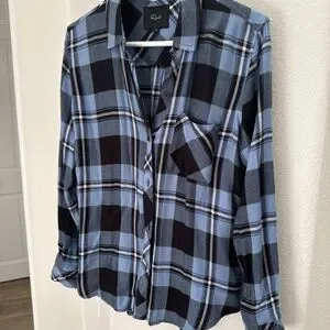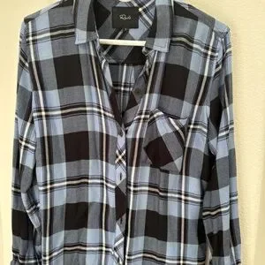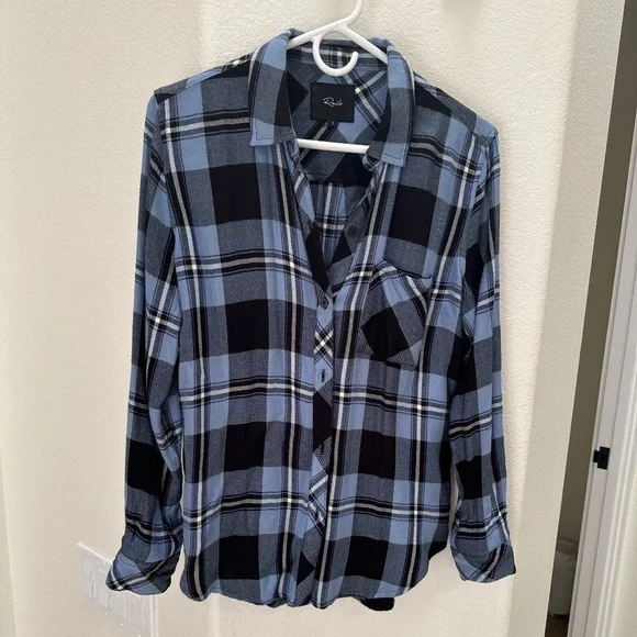 Rails Bottom up shirt! Size small, front pocket on one side, super cute with jeans and boots! Cute blue and black print! Classic rails shirt! Only worn one time.