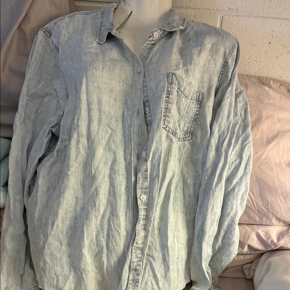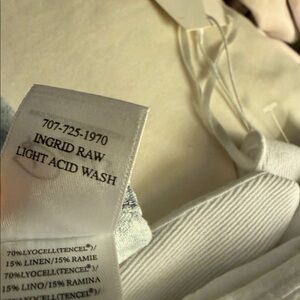 NWT Ingrid raw light acid wash, raw hem at bottom of top, buttoned down