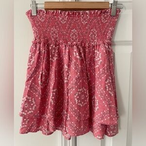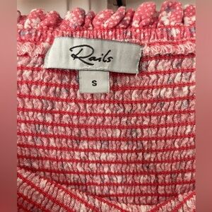 Rails Addison Smocked waist Skirt in Pink Ditsy Floral. Linen blend material. Size small. Excellent condition. Rare color for this pretty skirt. Please see measurements and keep in mind the waist is very stretchy.