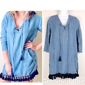 Rails Alicia Chambray Tassel Shift Dress Size XS