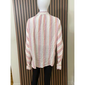 Rails Alyssa Women's L Pink Button-Up Linen Shirt Dusk Stripe Boho Aesthetic.