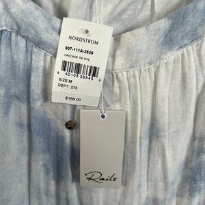 Rails Amaya Cascade Tie Dye Midi Dress size Medium Blue Gauze Tiered Vacation