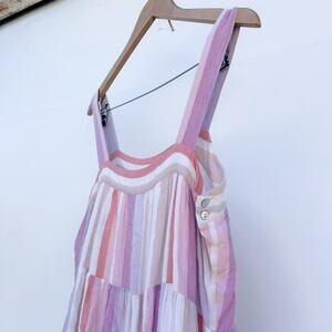 Rails Amaya Juliette Tiered Striped Tank Midi Dress Pink Linen Medium