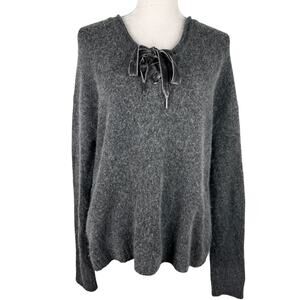 Rails Amelia Lace-Up Sweater M Charcoal Gray Cashmere Wool