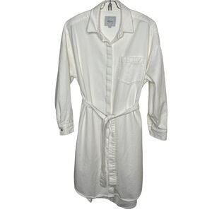 Rails Womens Solid White Denim Long Sleeve Dress Belted with Pocket Size Small
