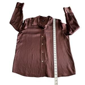 Rails Andrea Crinkle Silky Button Up Nutmeg Brown Long Sleeve Shirt L