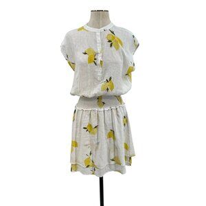 Rails Angelina Dress Mini Linen Citronnade Lemon Print White Yellow Size Medium