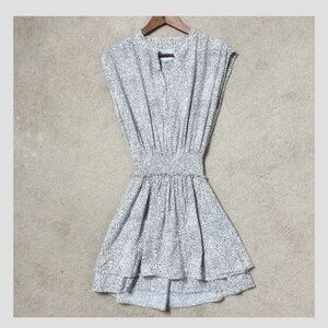 Style Tags: Rails mini dress, sand cheetah print, size XS Rails dress shirred waist elastic waist linen blend dress