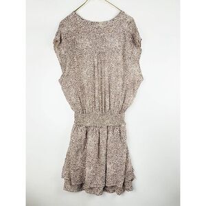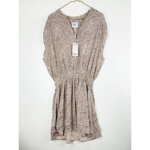 Rails Angelina Leopard-Print Sand Cheetah Linen-Blend Tiered Mini Dress Size XL